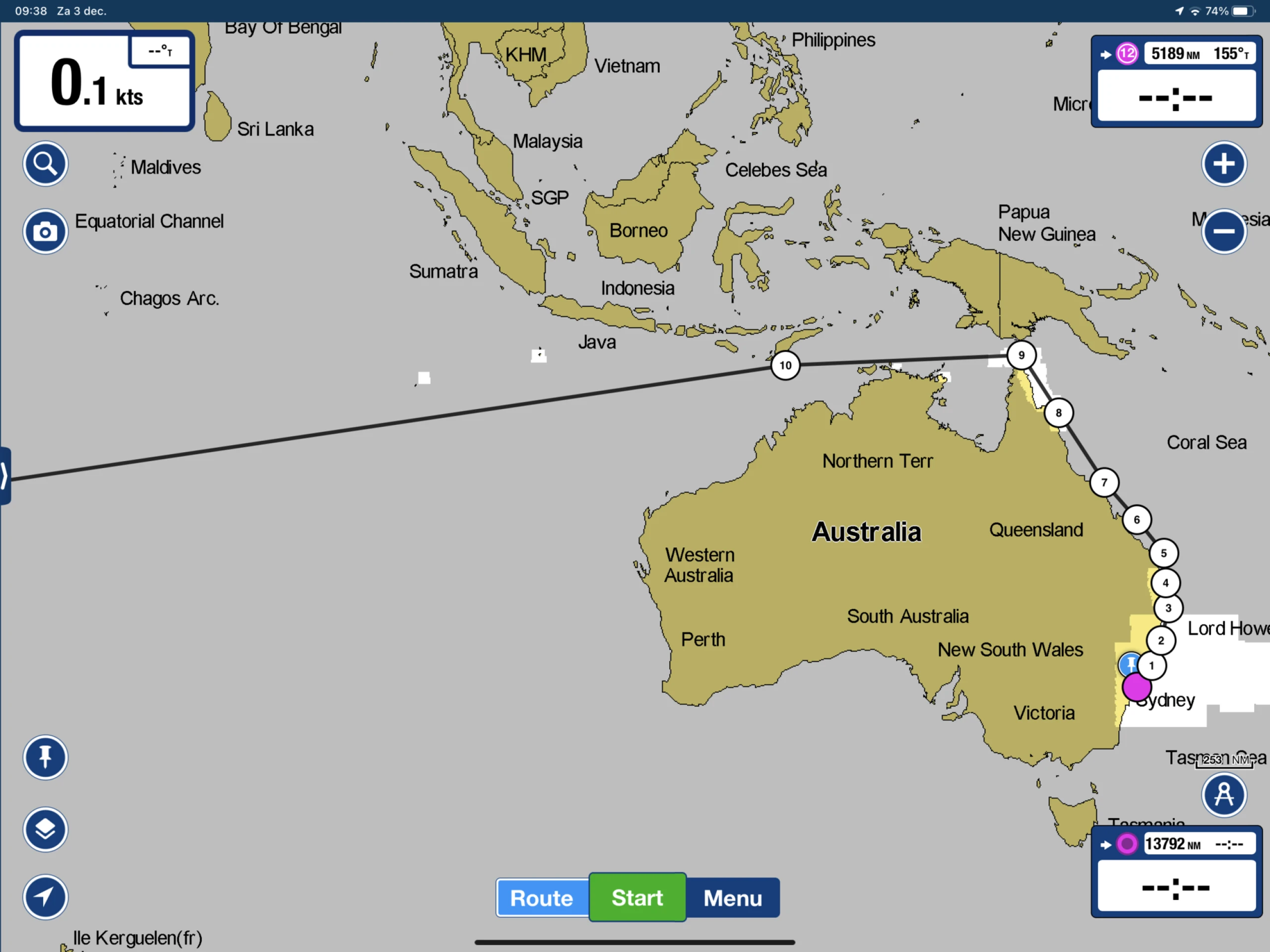 Als we daar flink doorgesnorkeld zijn en het maritieme leven hebben geteld gaan we door Torres Strait naar Christmas Island. Dat is al een pittig stukkie zeilen!
